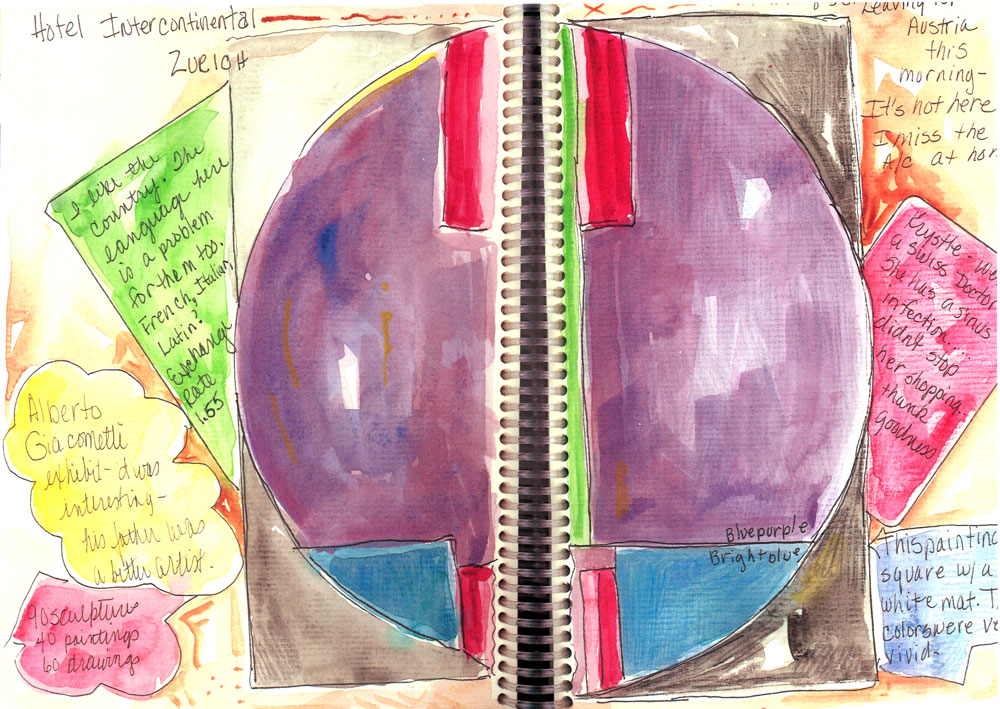 Sketchbooks are my first love! I carry one with me always and quick sketch my travels. I carry watercolors and markers, glue and tape. I have been know to paint my dinner before I eat it. I learned to love sketching from Judi Betts.
